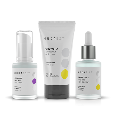 He comprado este kit completamente a mi juicio, puro vera, water tank y awaking klotho, debo decir que son lo mejor que he probado en skin care. Soy un hombre de 40 años, sin problemas en la piel. Pero después de tres semanas de utilizar estos productos mi piel ha mejorado muchísimo en firmeza, luminosidad y unificación del tono.
